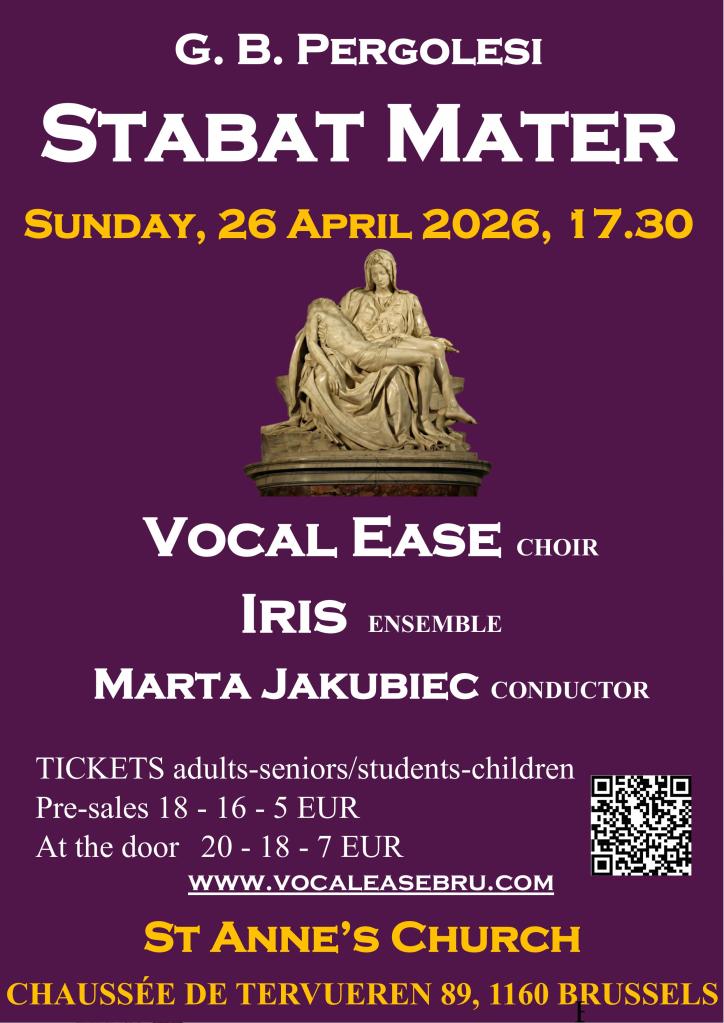 Choir Vocal Ease and Iris Ensemble invite you to a concert featuring Giovanni Battista Pergolesi’s Stabat Mater as the main work. This is one of the most moving pieces of Baroque music. The young composer, who lived only 26 years, created it shortly before his death, and his music is full of emotion and beautiful melodies. It is a work capable of touching even those who do not normally listen to classical music.