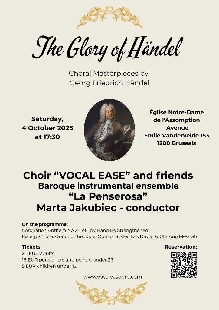 Vocal Ease & Friends (tenors and basses) together with the ensemble La Penserosa, playing on historical instruments, under the direction of Marta Jakubiec, presented works composed by J.F. Handel during his years in London. The program included Coronation Anthem No. 2, as well as famous excerpts from the oratorios Messiah and Theodora—a work overlooked during Handel’s lifetime but now considered one of his greatest masterpieces.